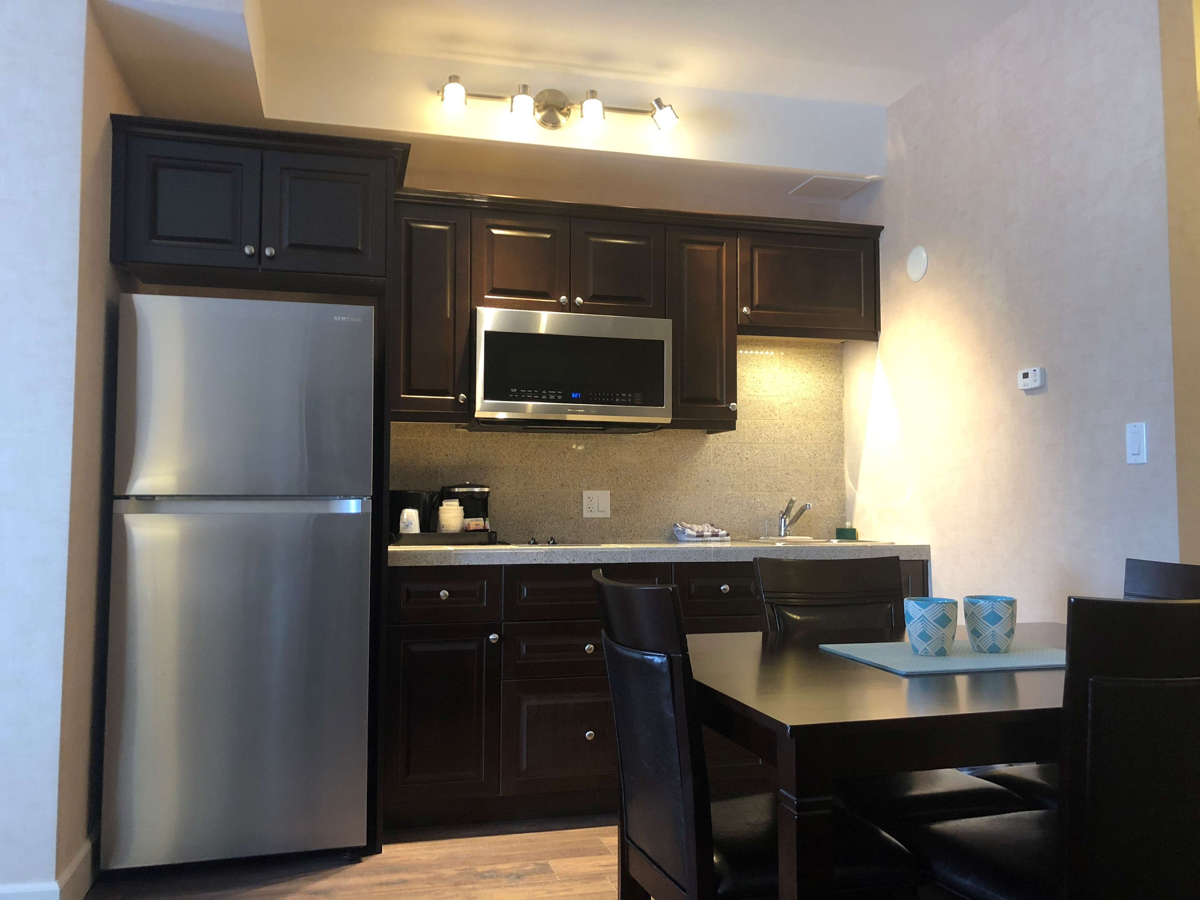 Providing free toiletries, this suite includes a private bathroom with a bath or a shower and a hairdryer. The suite's kitchenette, which features a microwave, is available for cooking and storing food. The spacious suite provides air conditioning, a tea and coffee maker, a seating area, a wardrobe and a flat-screen TV with cable channels.